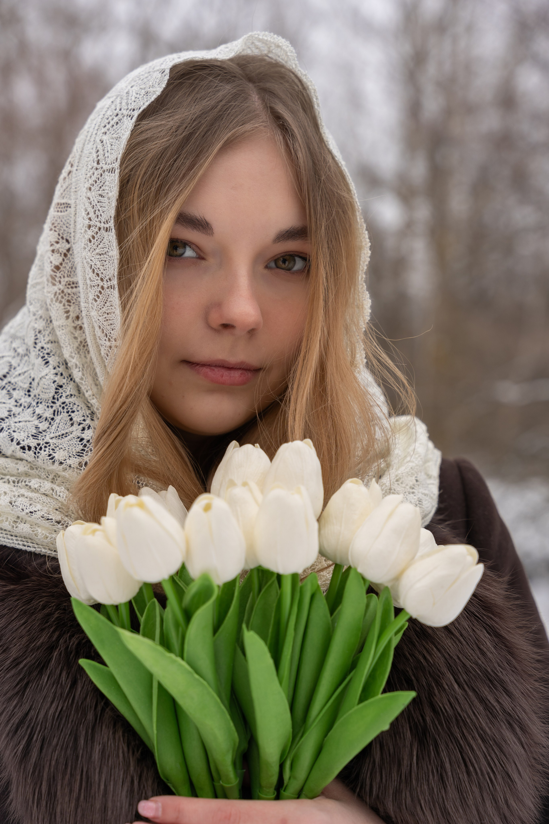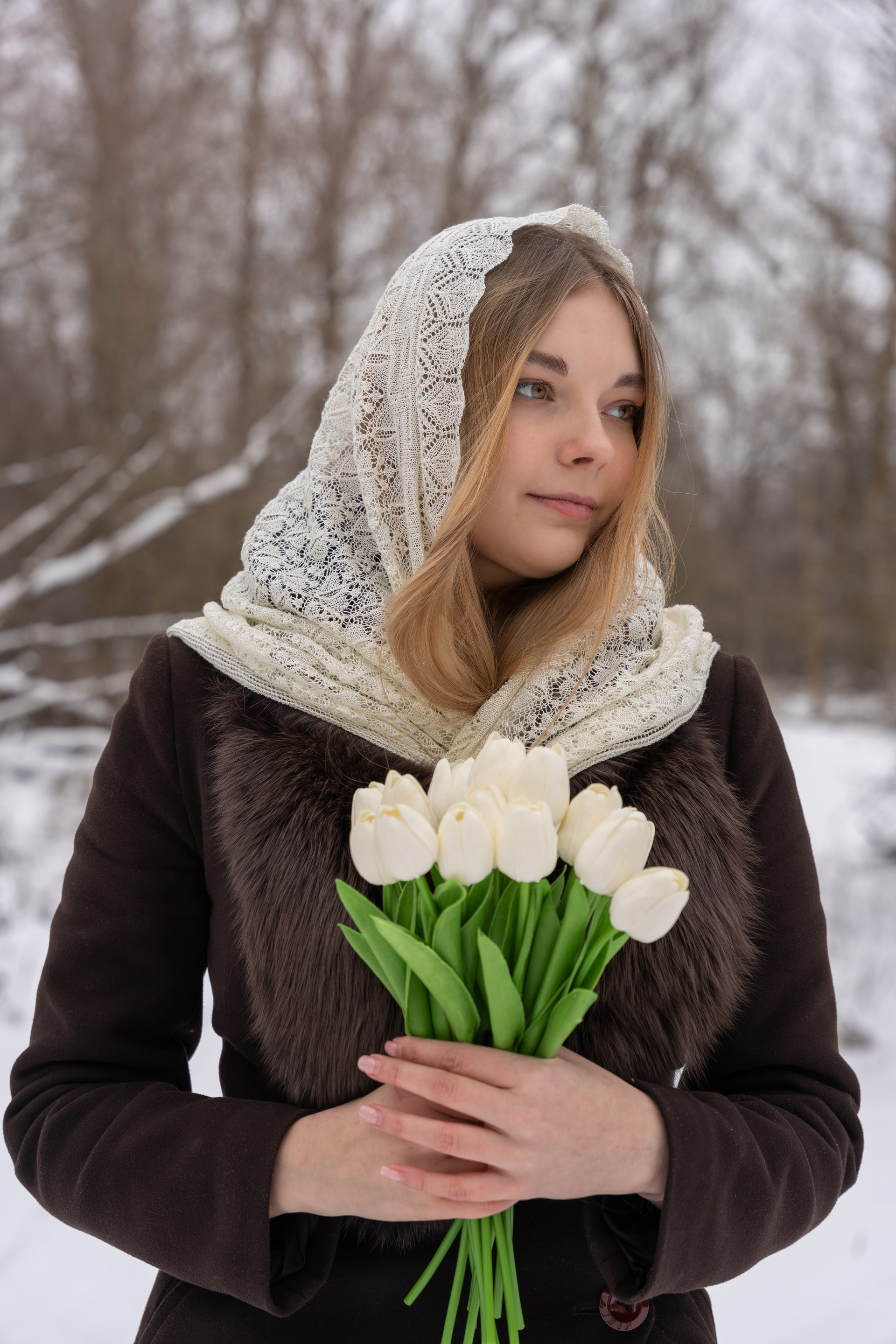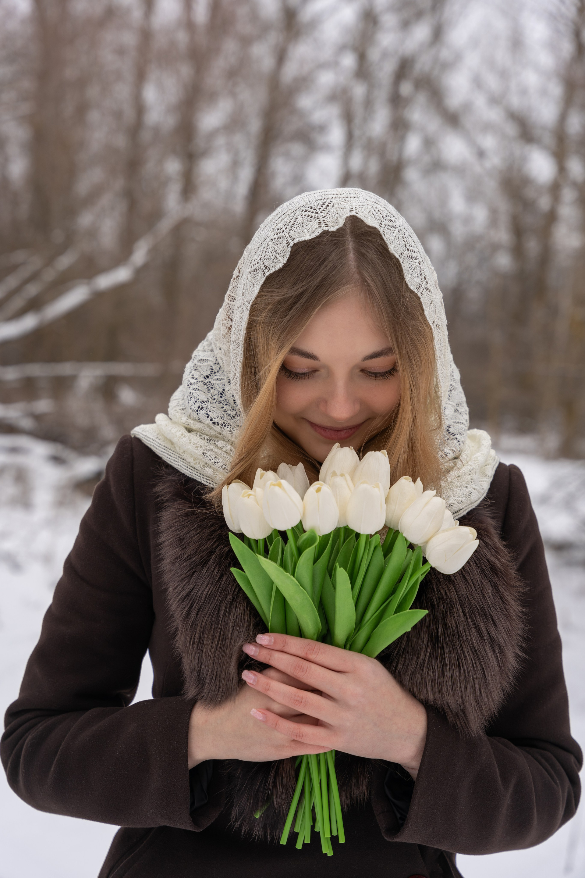 пальто и корзина с тюльпанами сделали историю мягче и романтичнее.