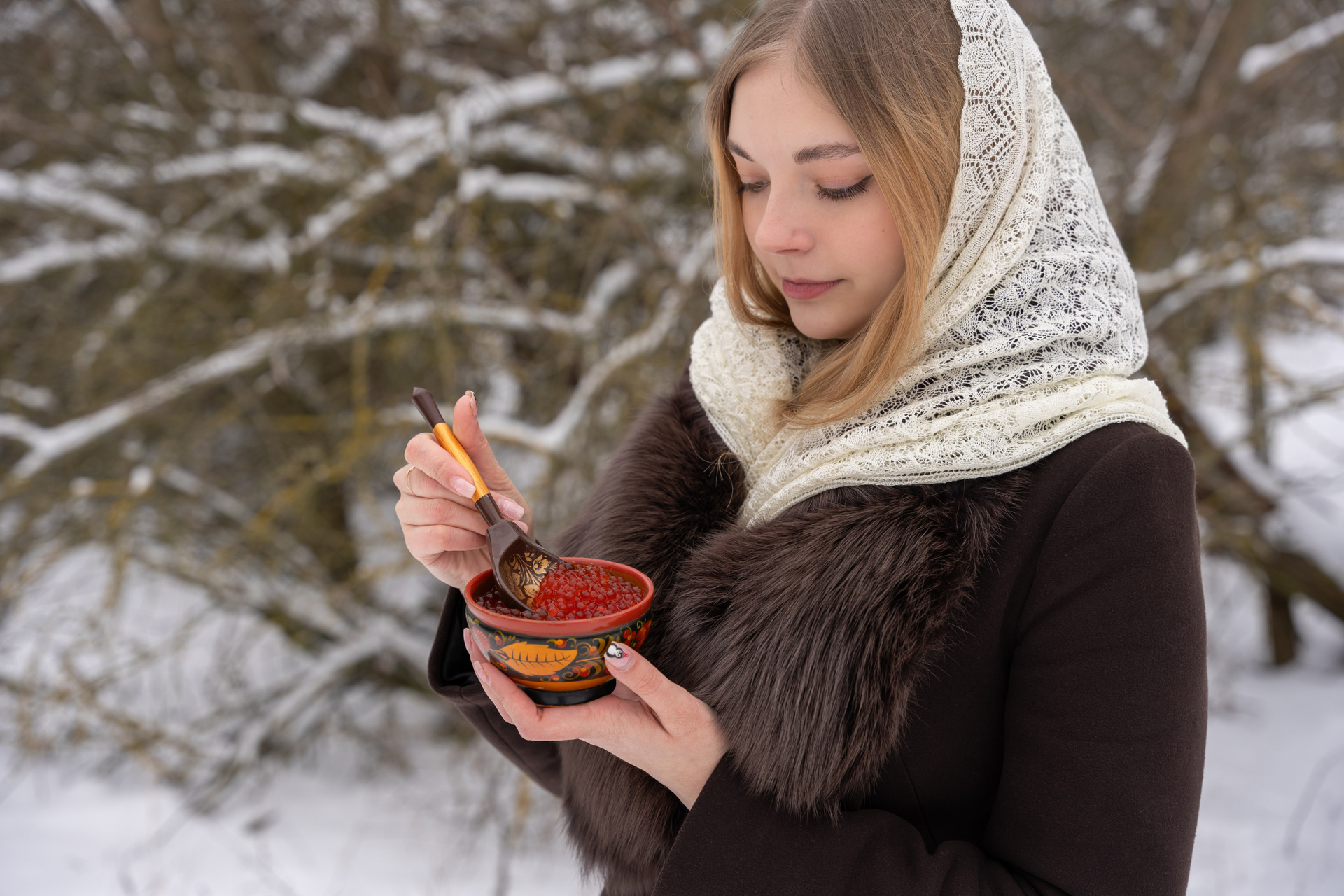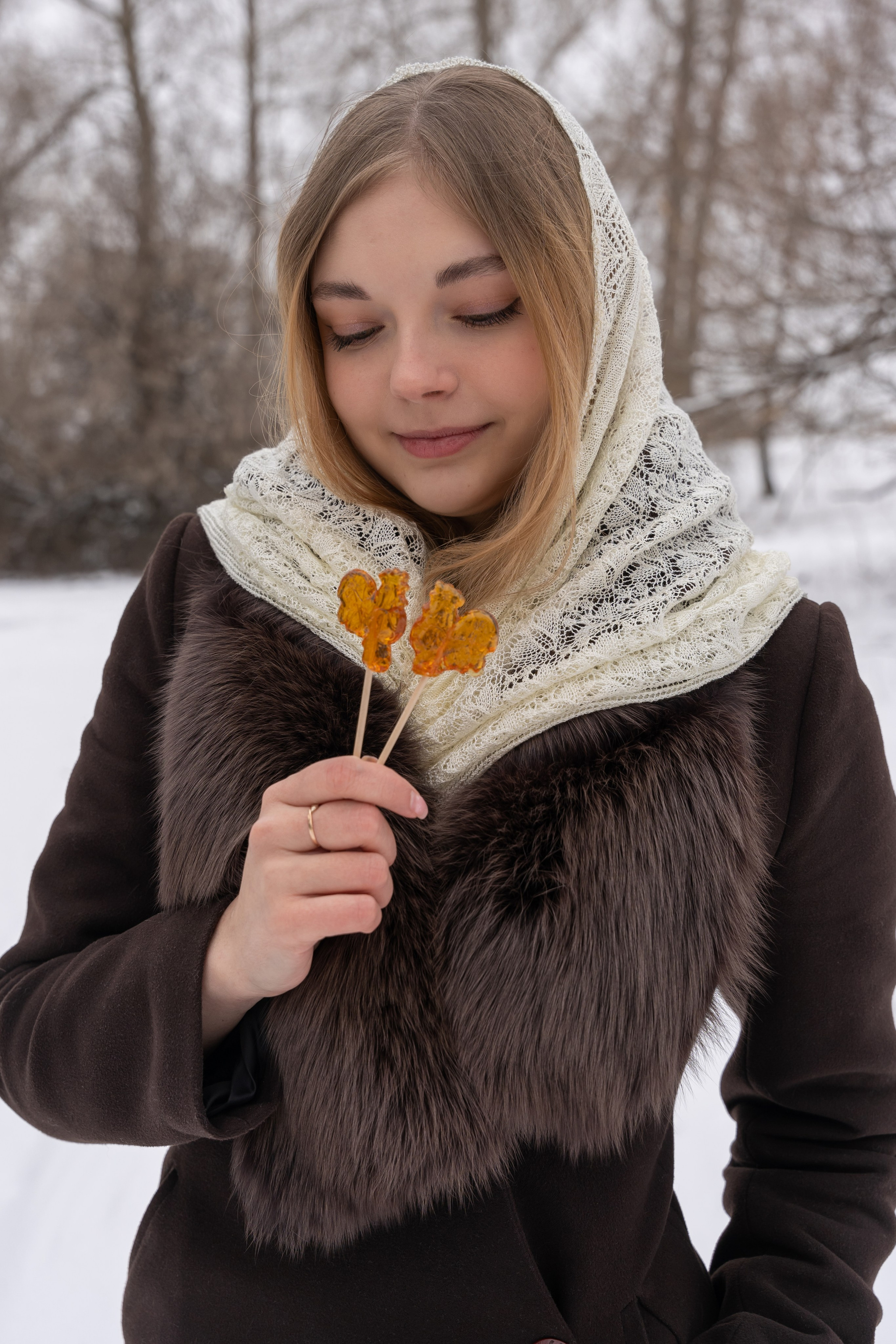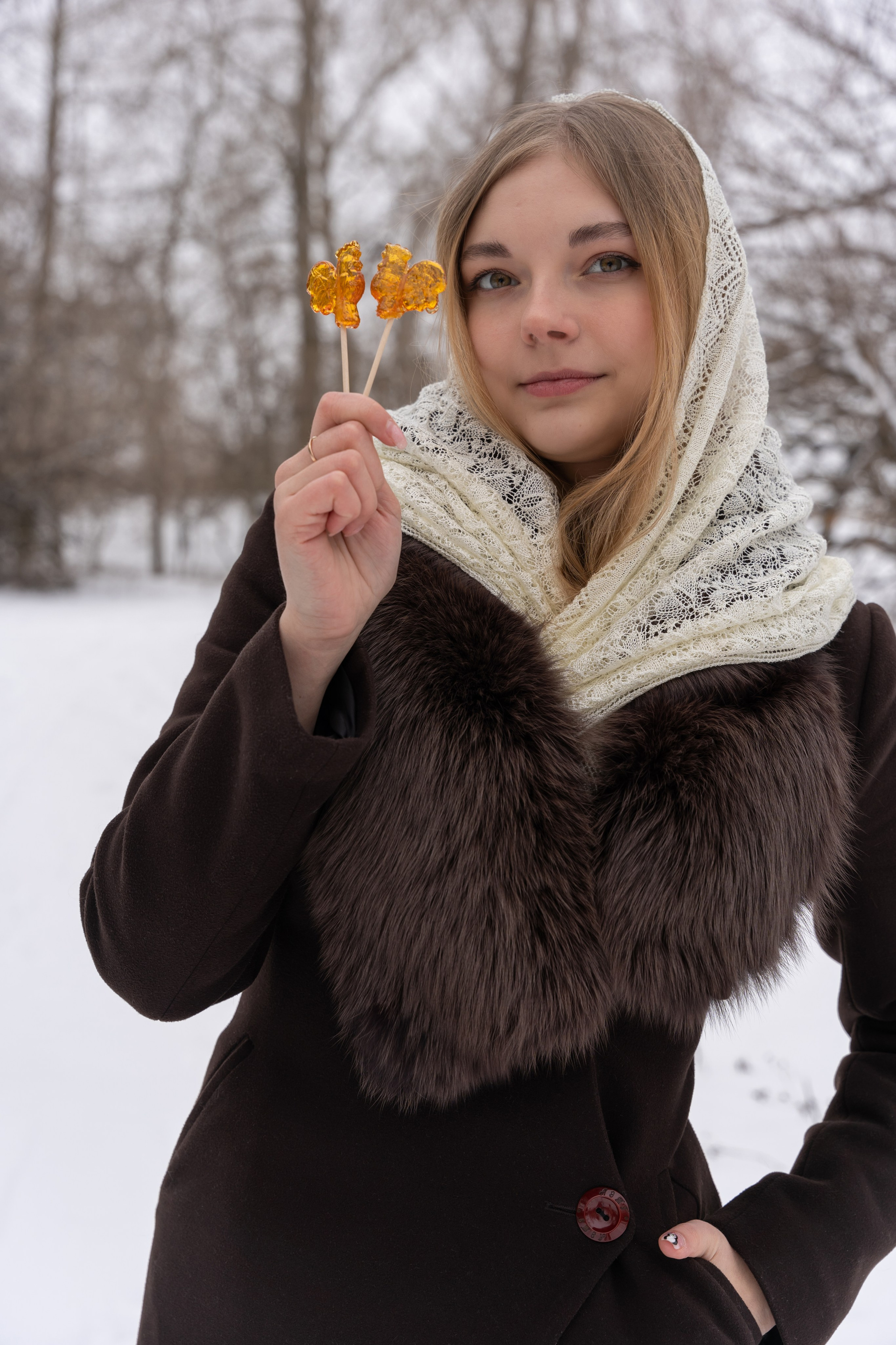 гуляла по заснеженному лесу, и весь кадр дышал тишиной и морозом. Яркие
