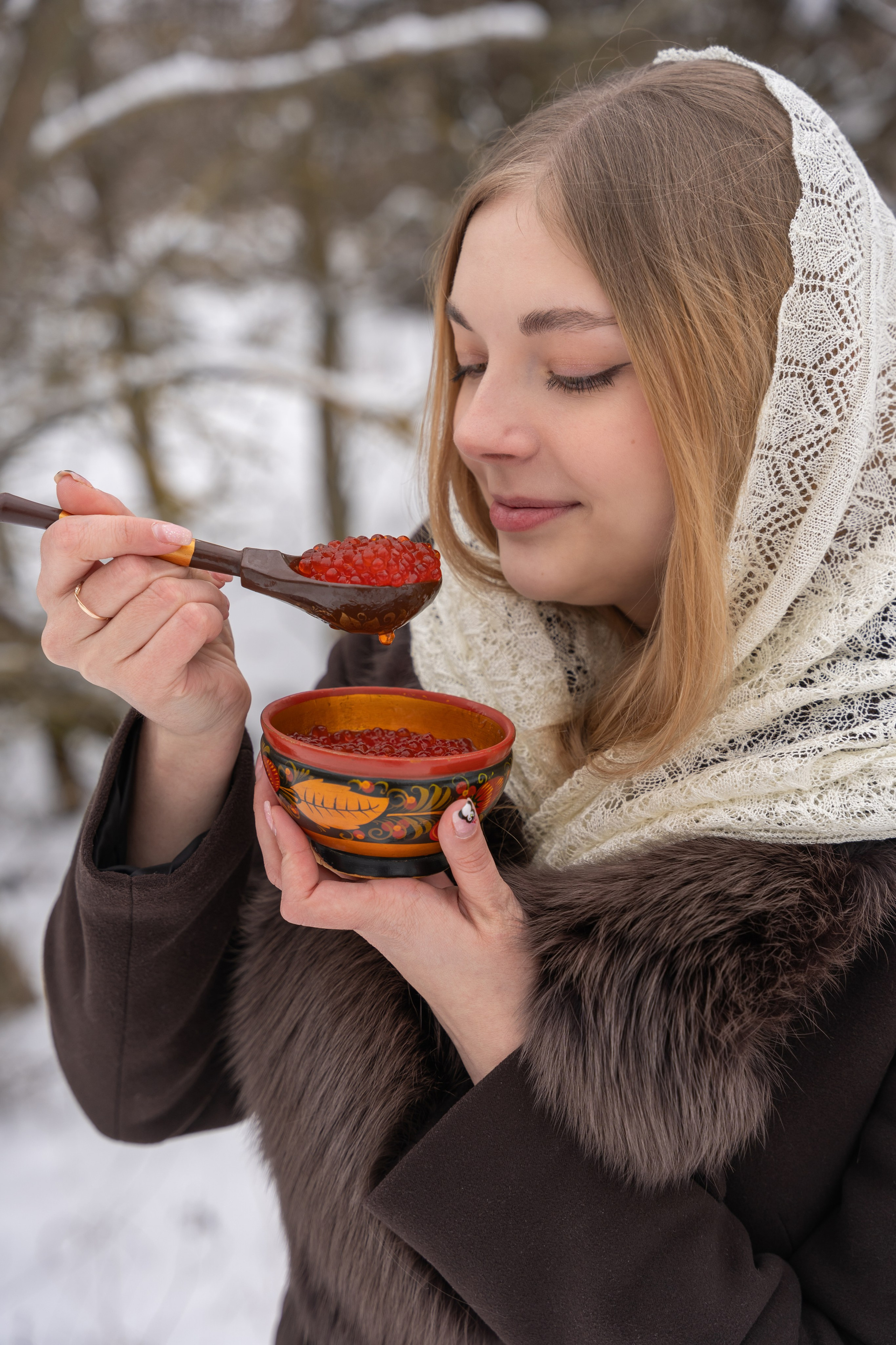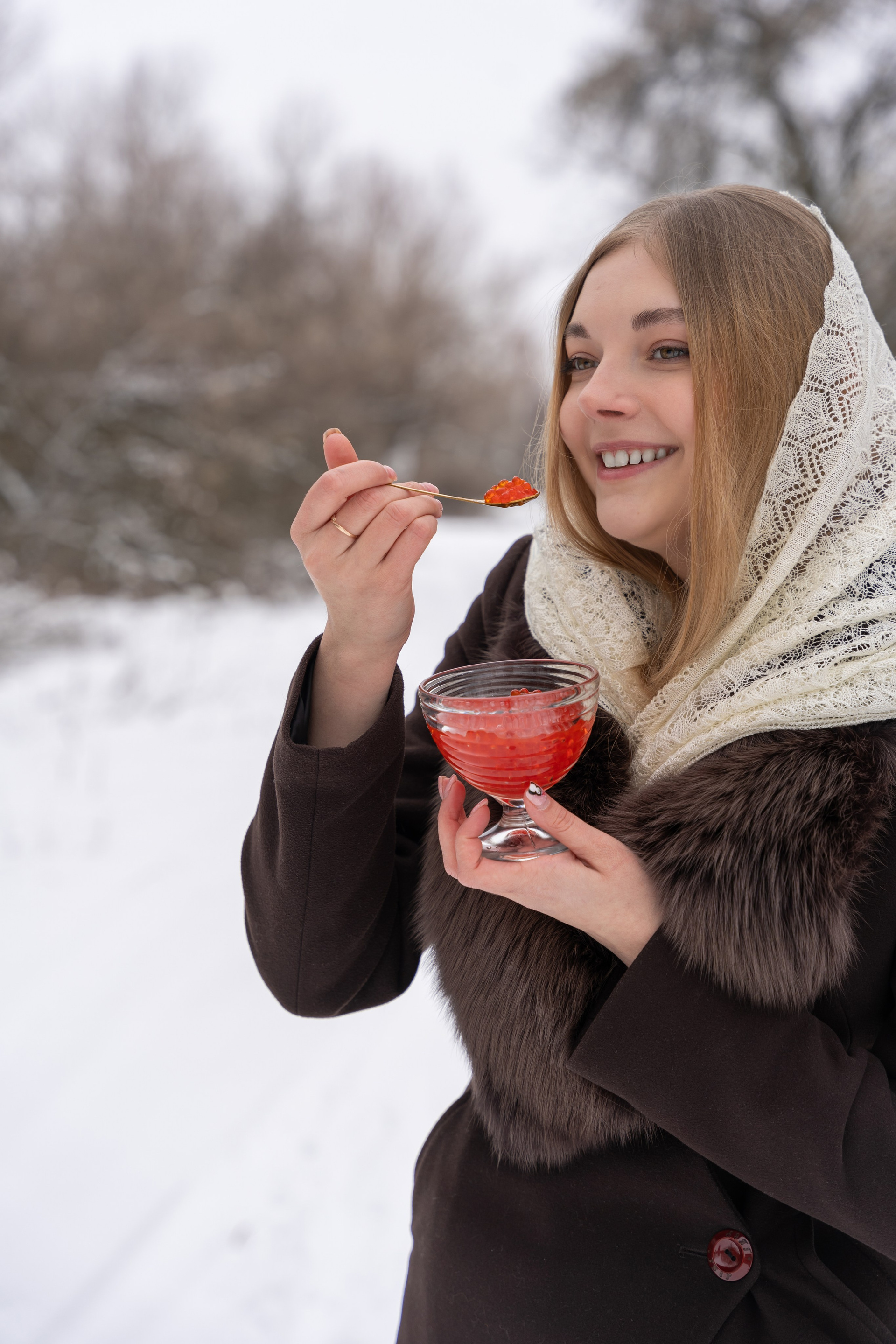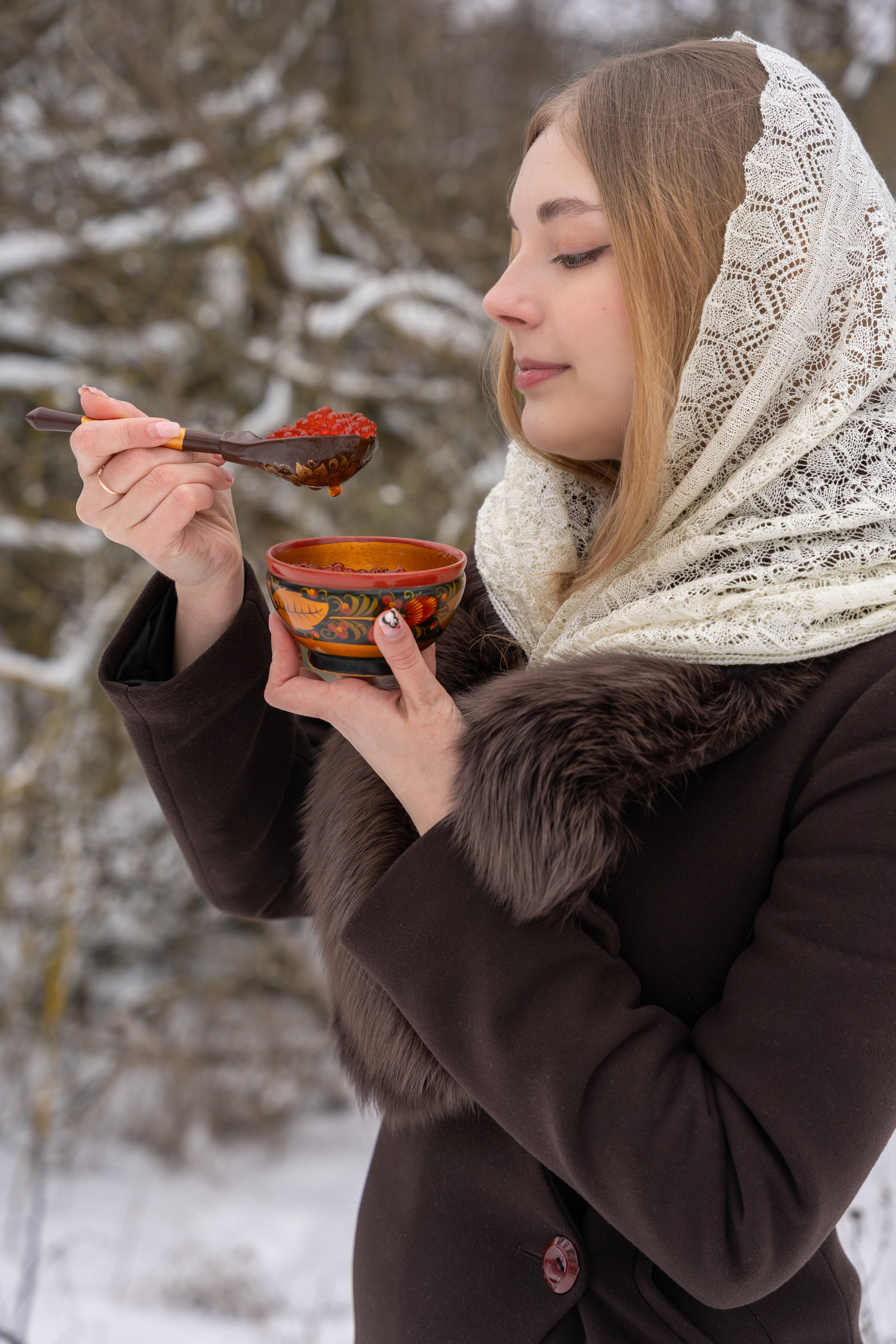 гуляла по заснеженному лесу, и весь кадр дышал тишиной и морозом. Яркие