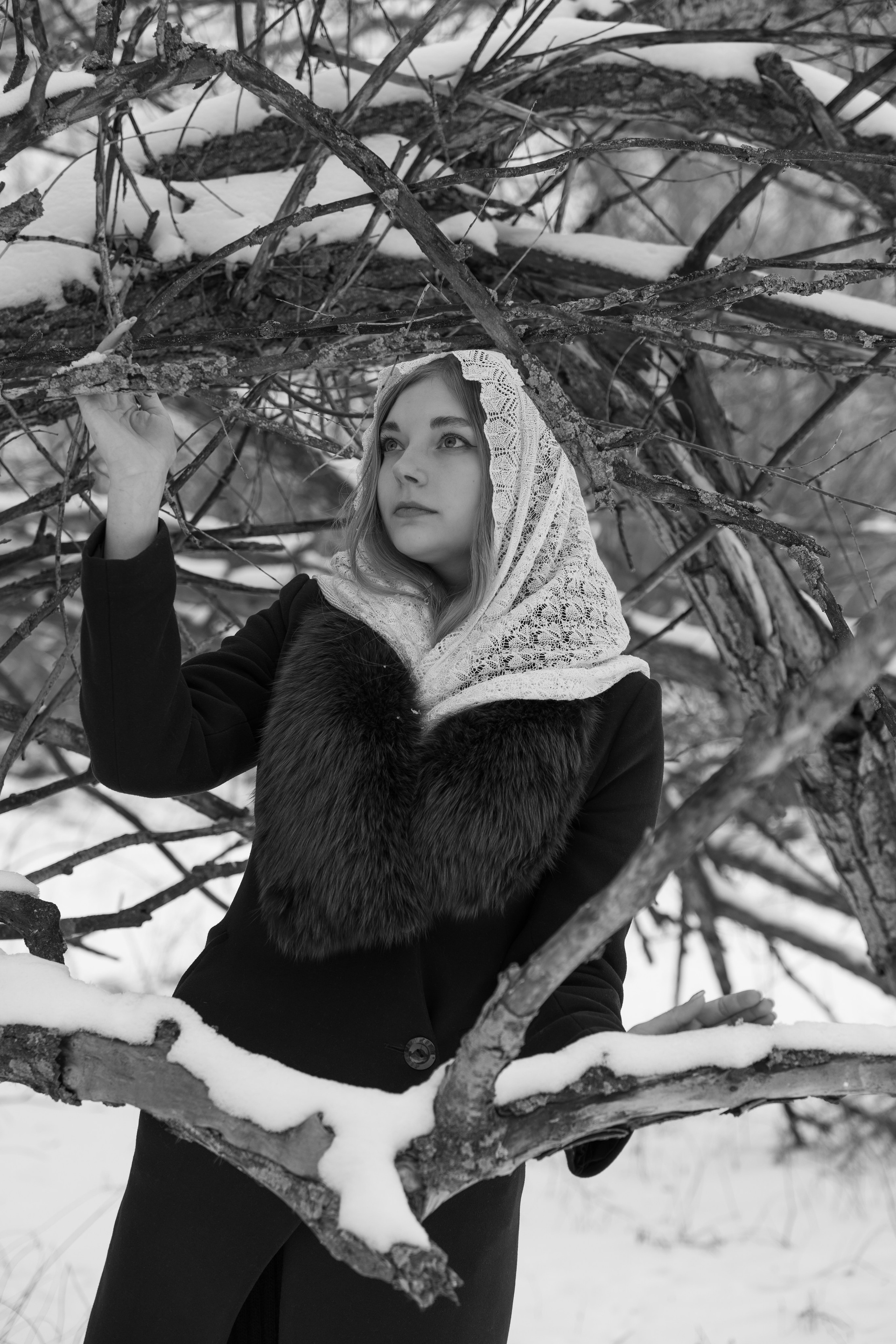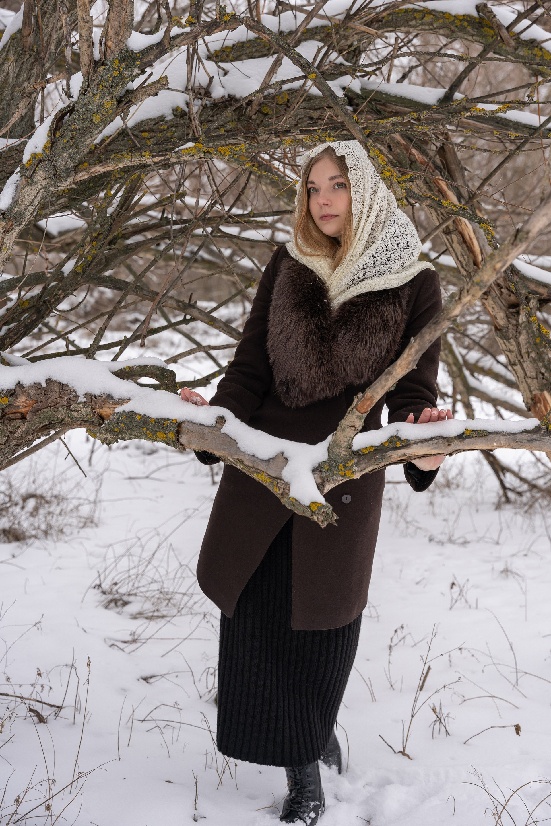 зимняя фотосессия — про смену настроения от современного минимализма к винтажной