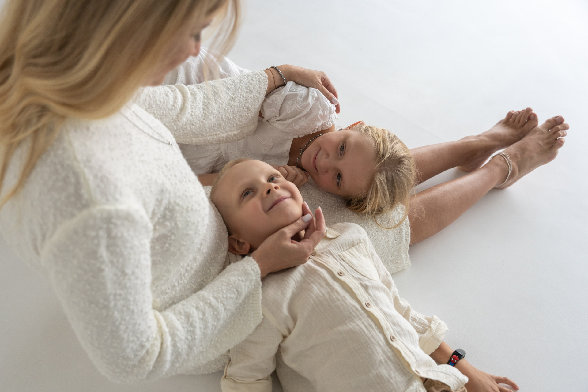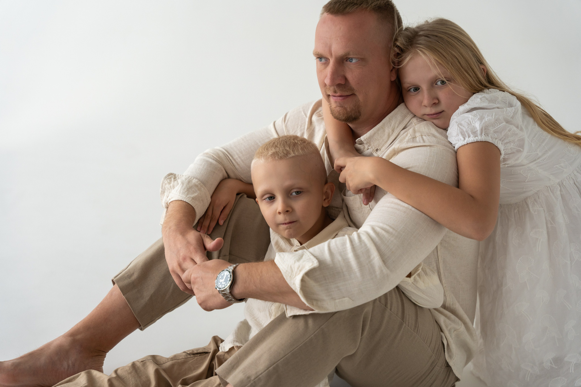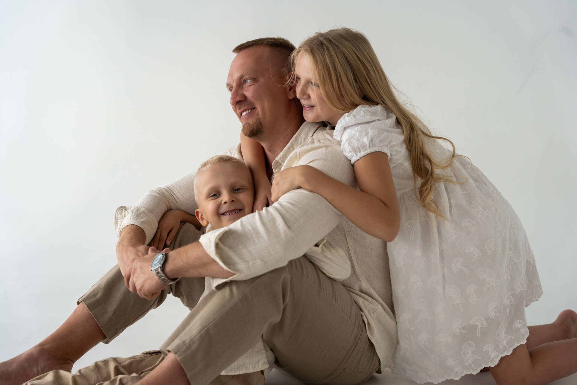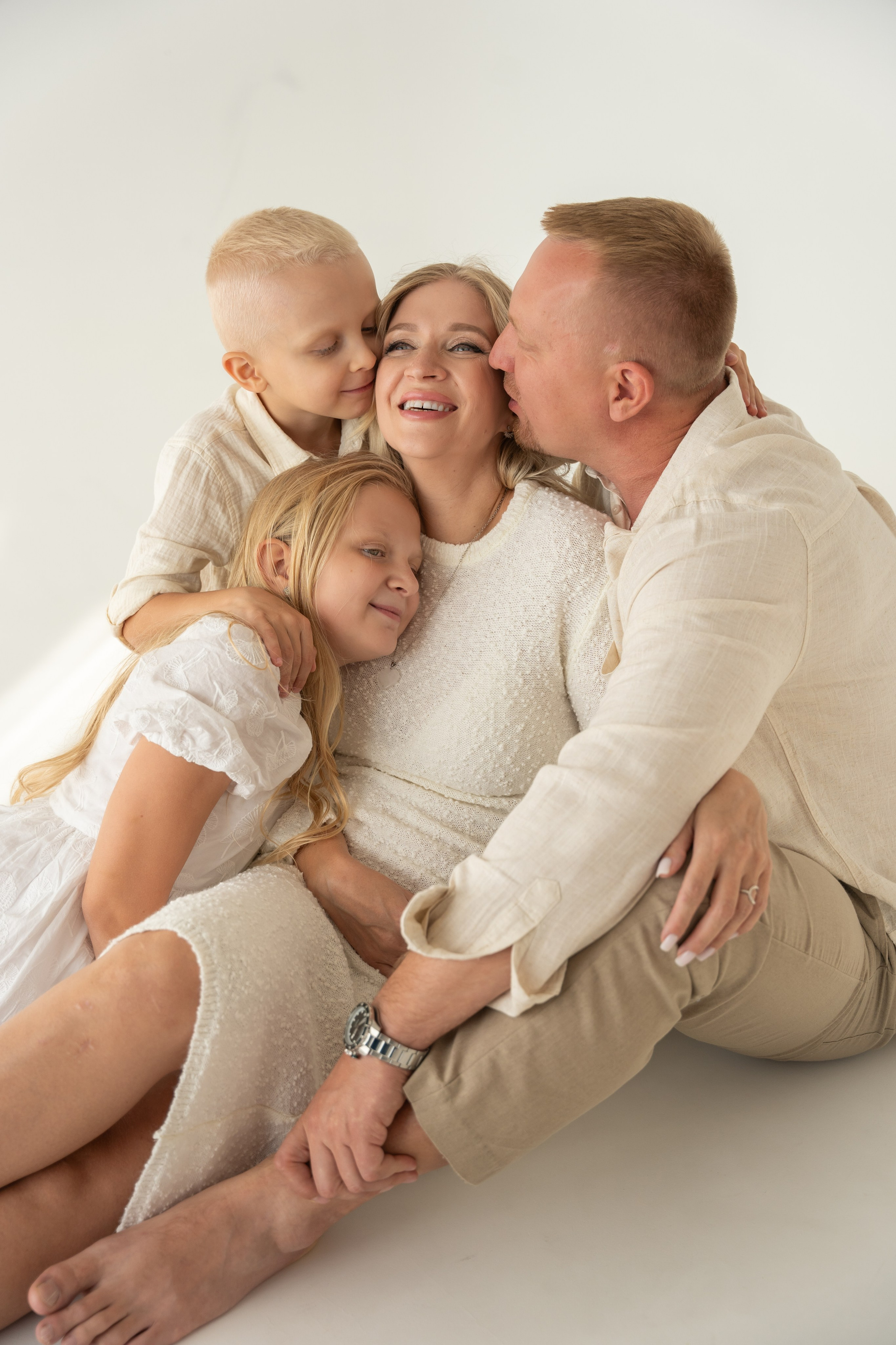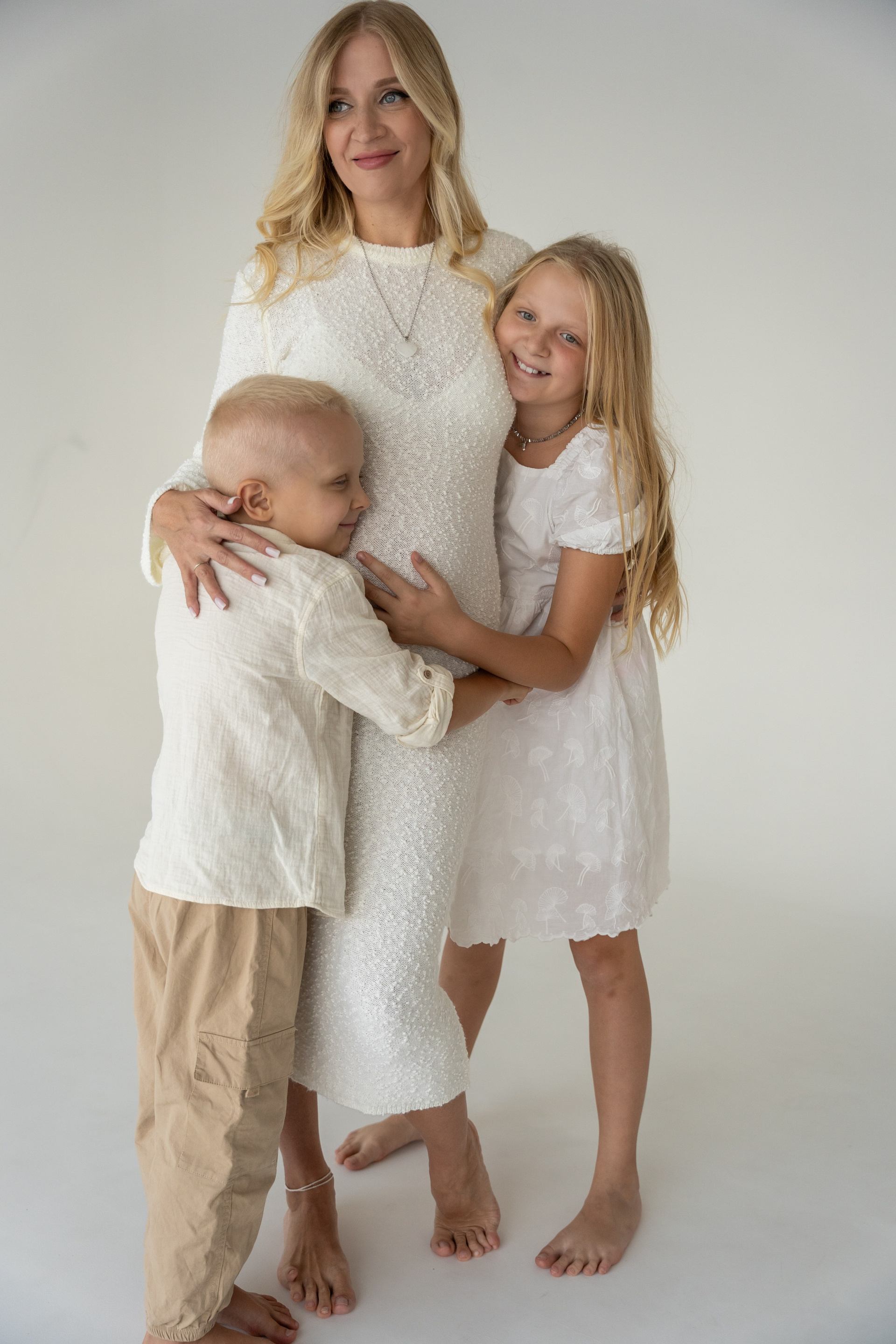 В светлой студии состоялась теплая семейная фотосессия. Царила атмосфера простоты и уюта, где было легко и спокойно. Мама, ожидающая третьего малыша, сияла тихой радостью и внутренним теплом. Папа бережно поддерживал семью своей заботой и мягкой уверенностью. Дочка и младший сын наполнили кадр детским любопытством и искренними улыбками. Каждое прикосновение и взгляд рассказывали о любви и близости. Съемка получилась светлой, нежной и по‑настоящему домашней. Эти фотографии навсегда сохранят моменты ожидания, единства и счастья их растущей семьи.