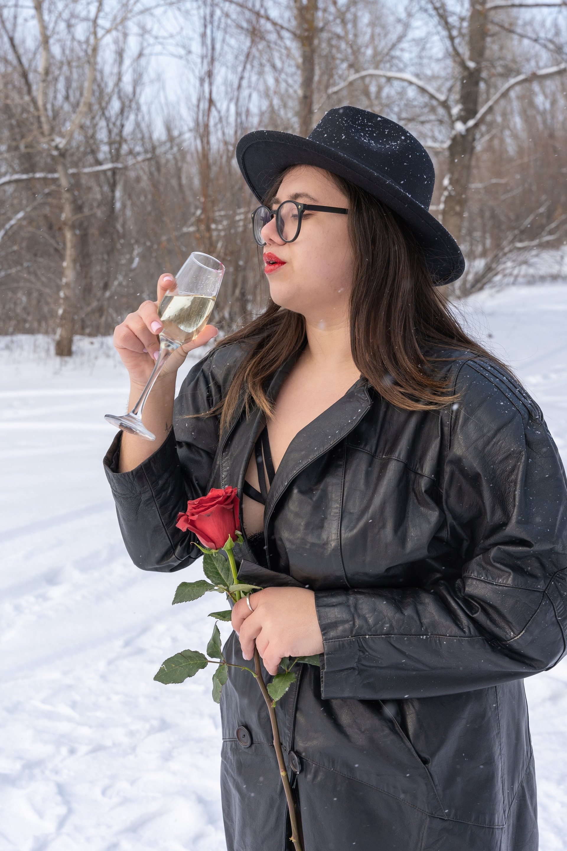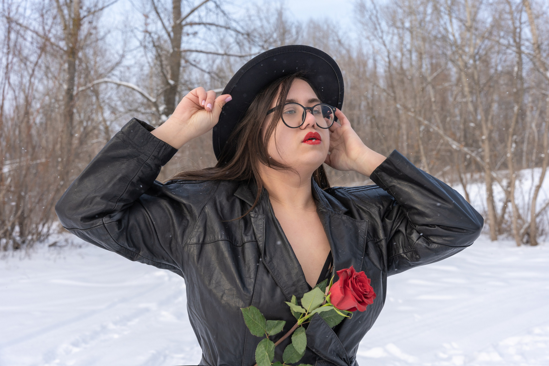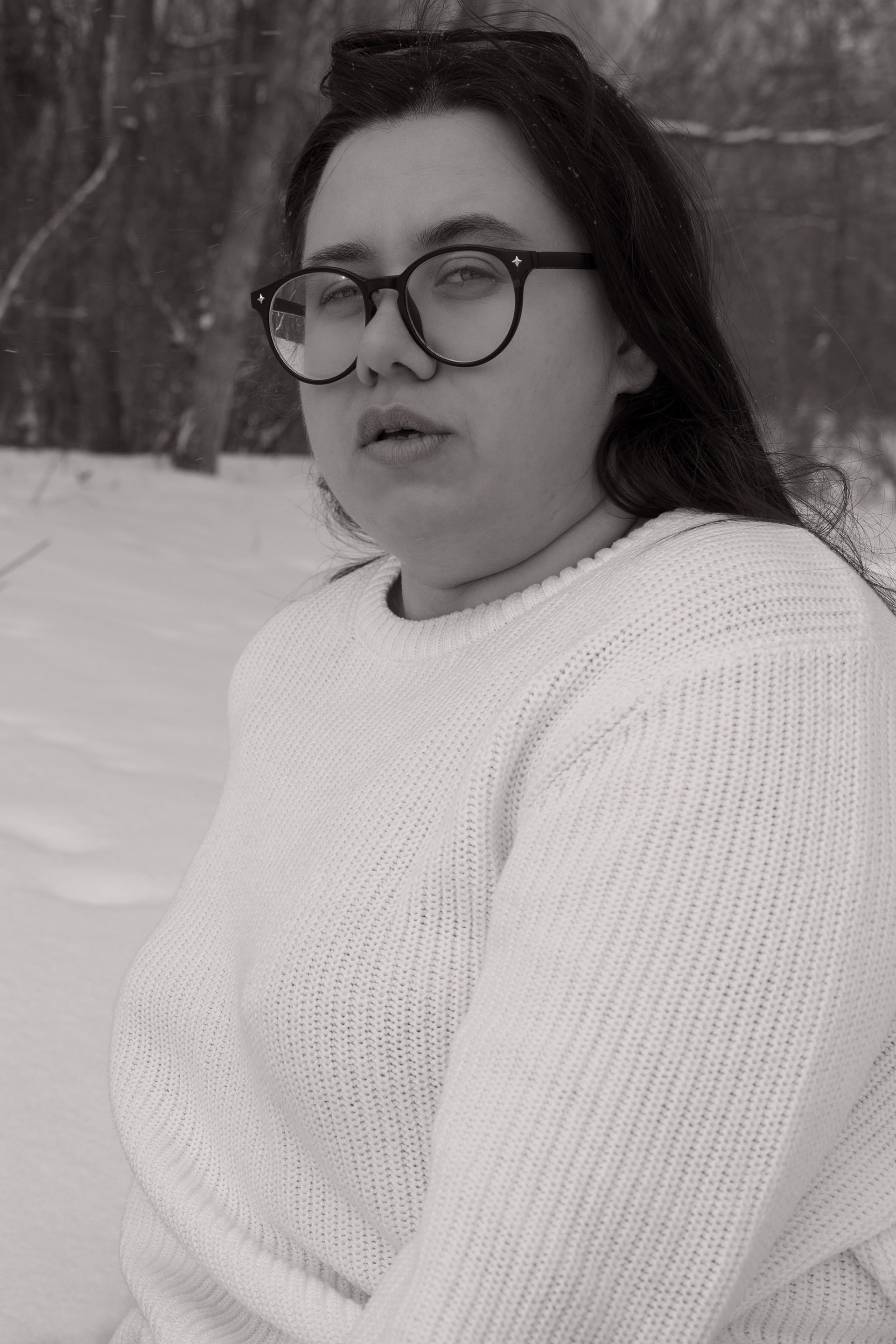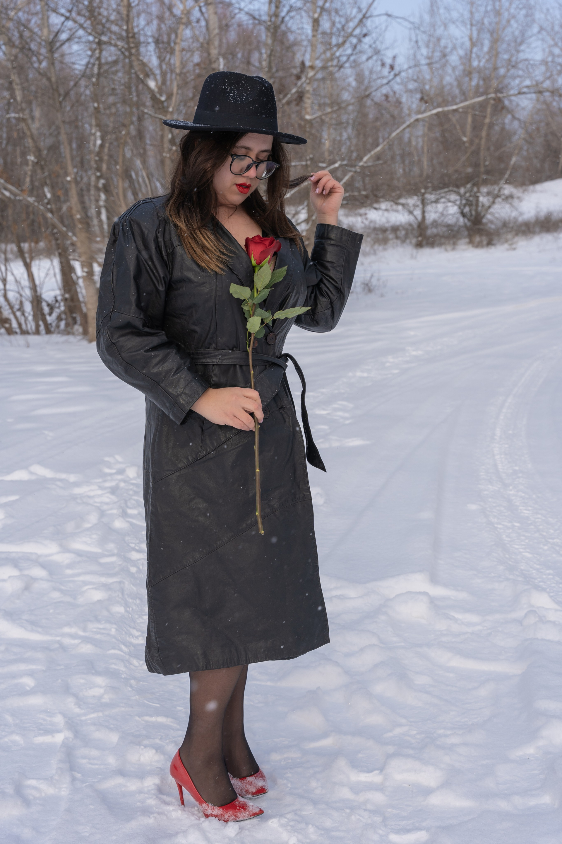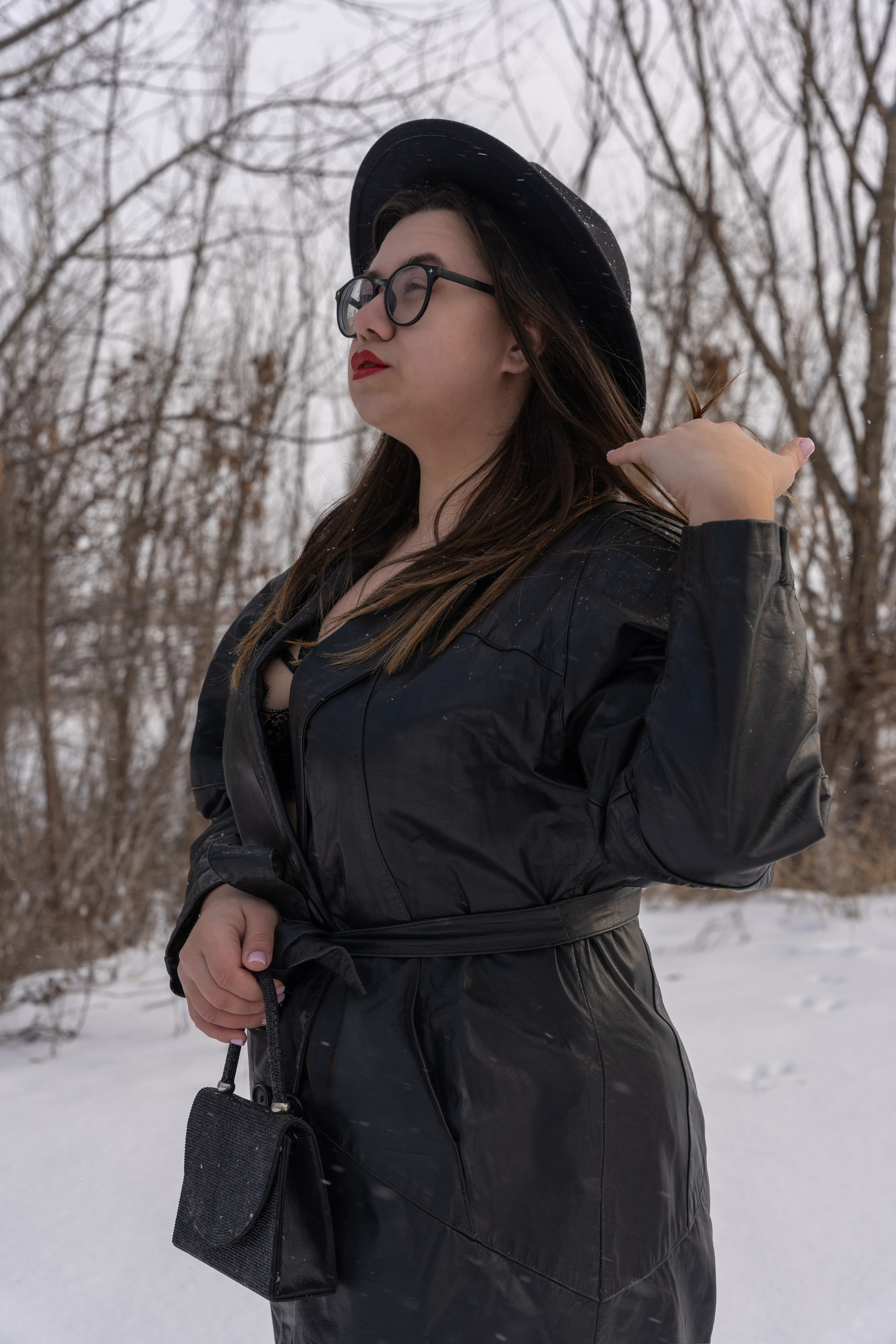 Мы снимали два образа в живописной зимней локации, где снег и деревья создавали волшебную атмосферу. Чтобы не замерзнуть, каждые 10 минут мы грелись в машине, но это не помешало нам получить много красивых и искренних кадров.