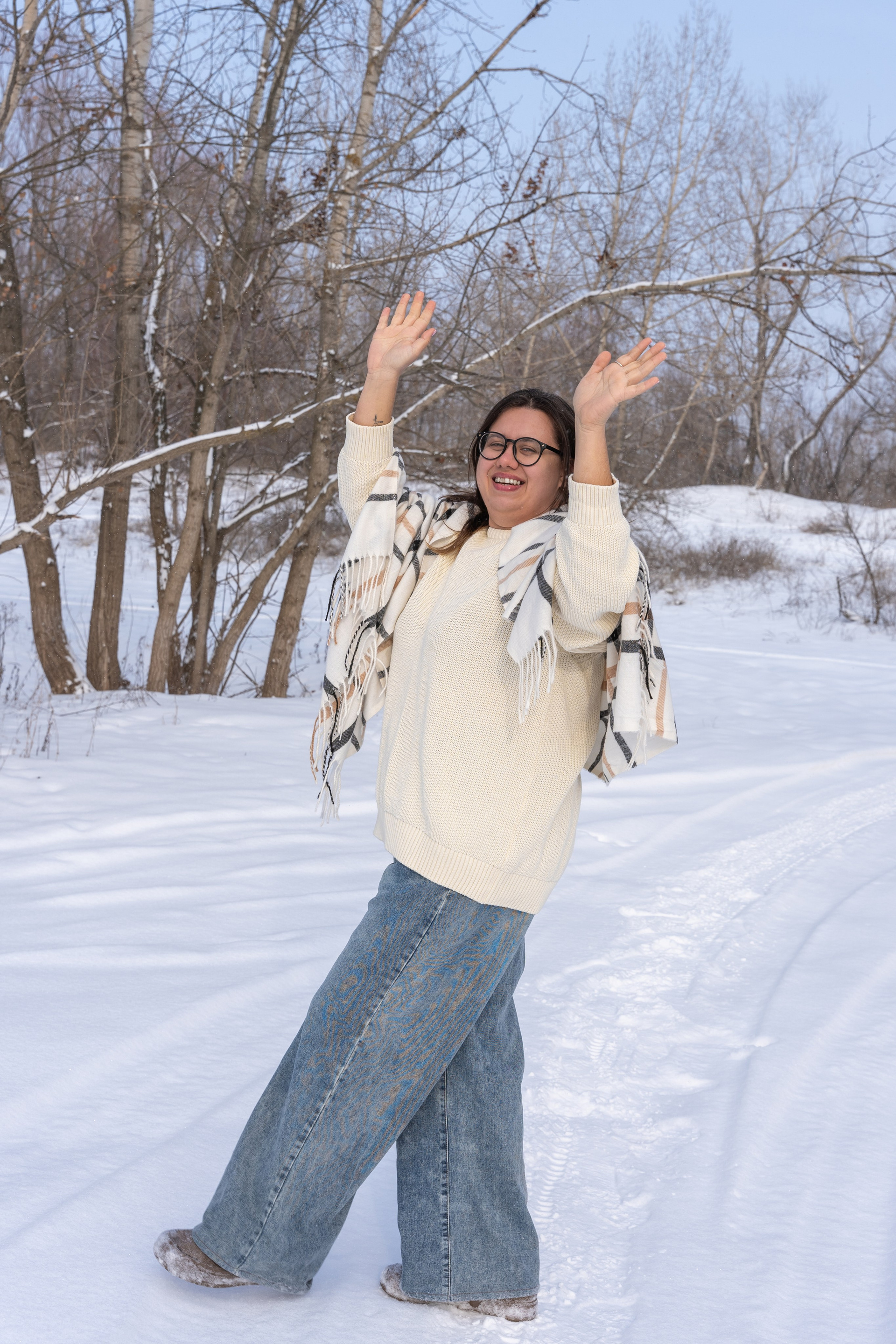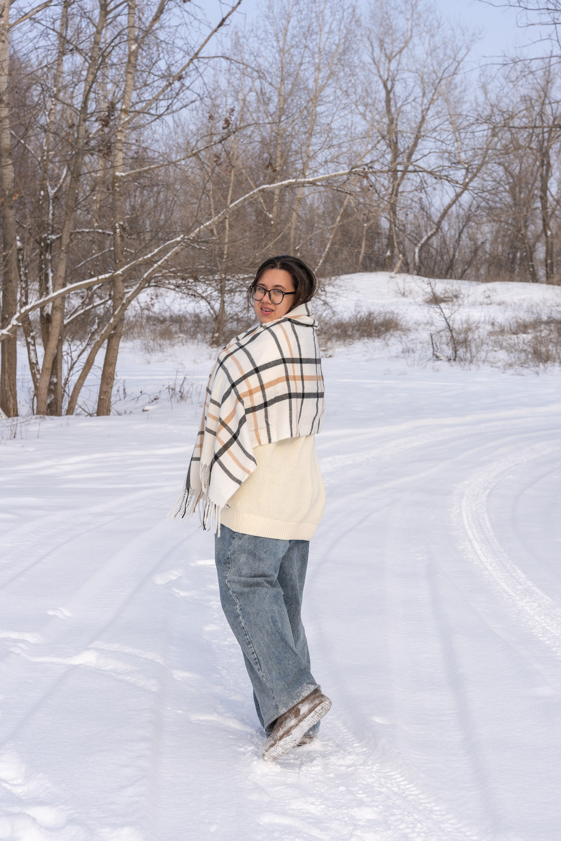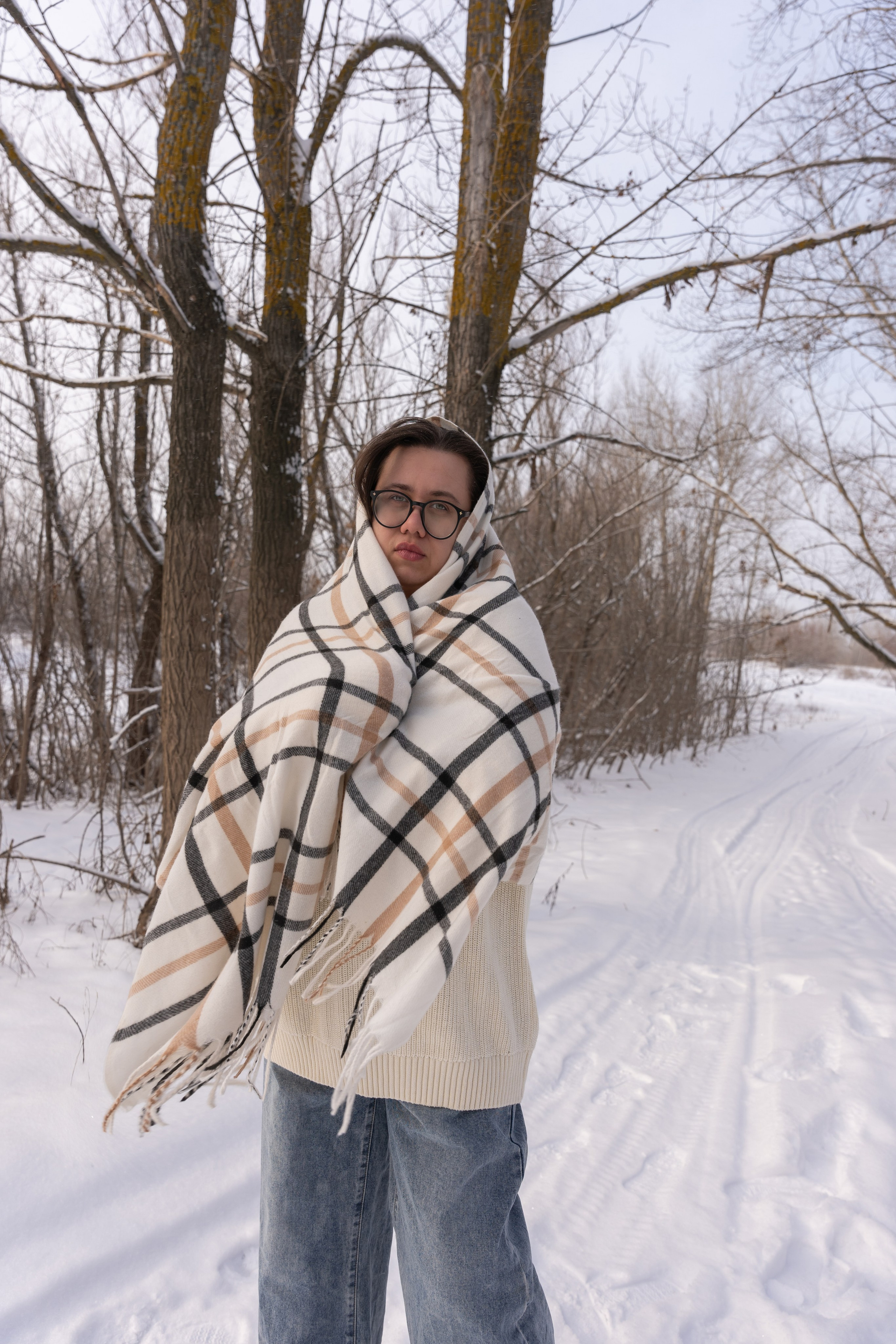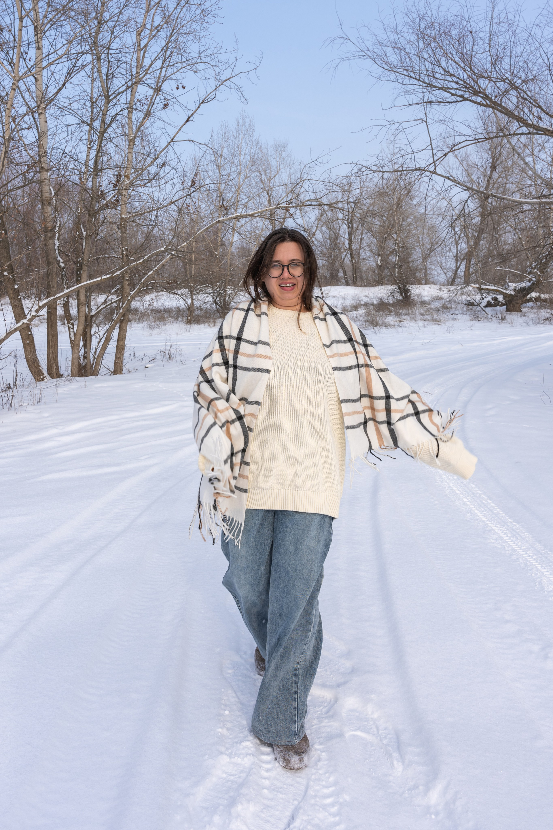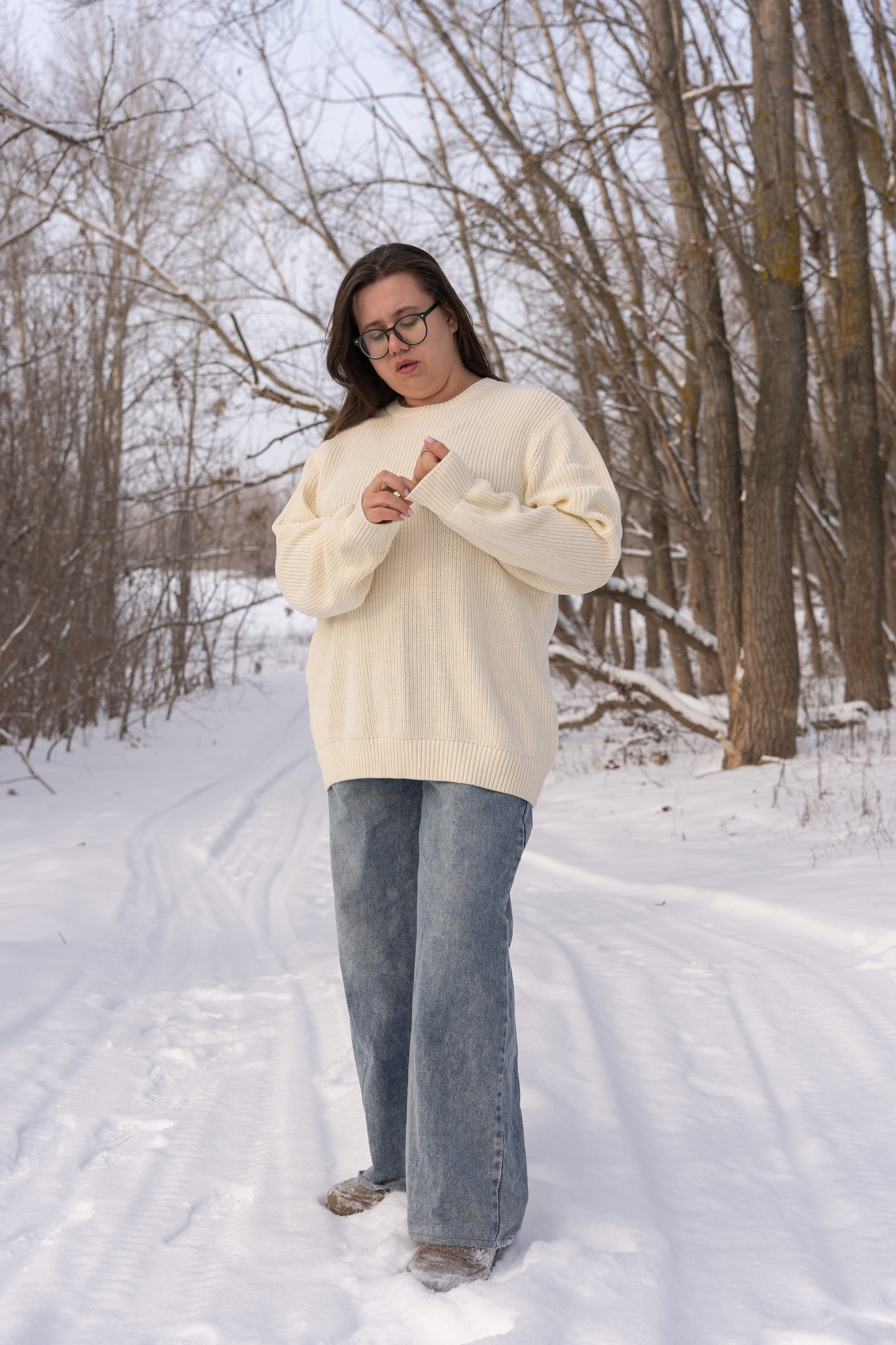 Мы снимали два образа в живописной зимней локации, где снег и деревья создавали волшебную атмосферу. Чтобы не замерзнуть, каждые 10 минут мы грелись в машине, но это не помешало нам получить много красивых и искренних кадров.
