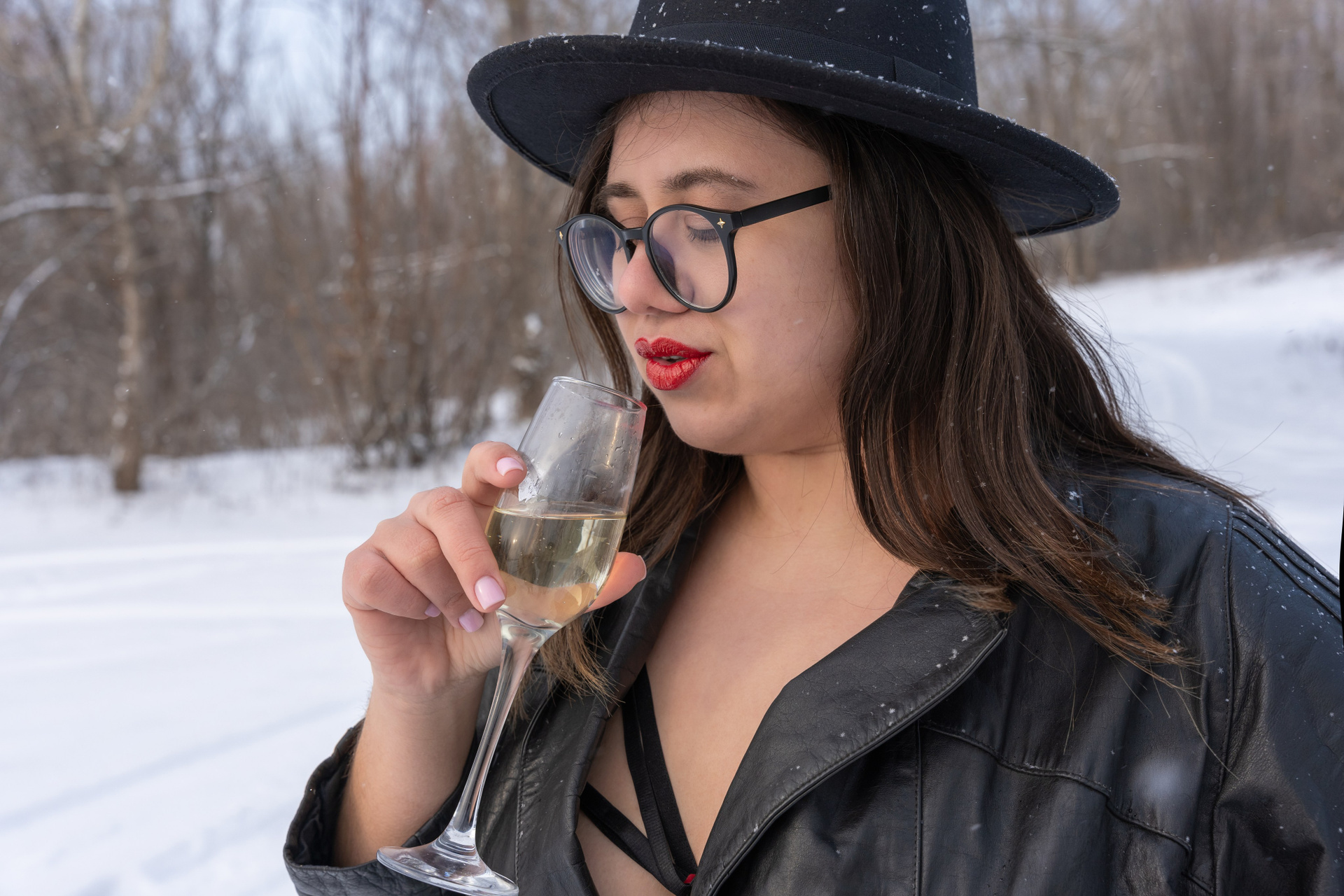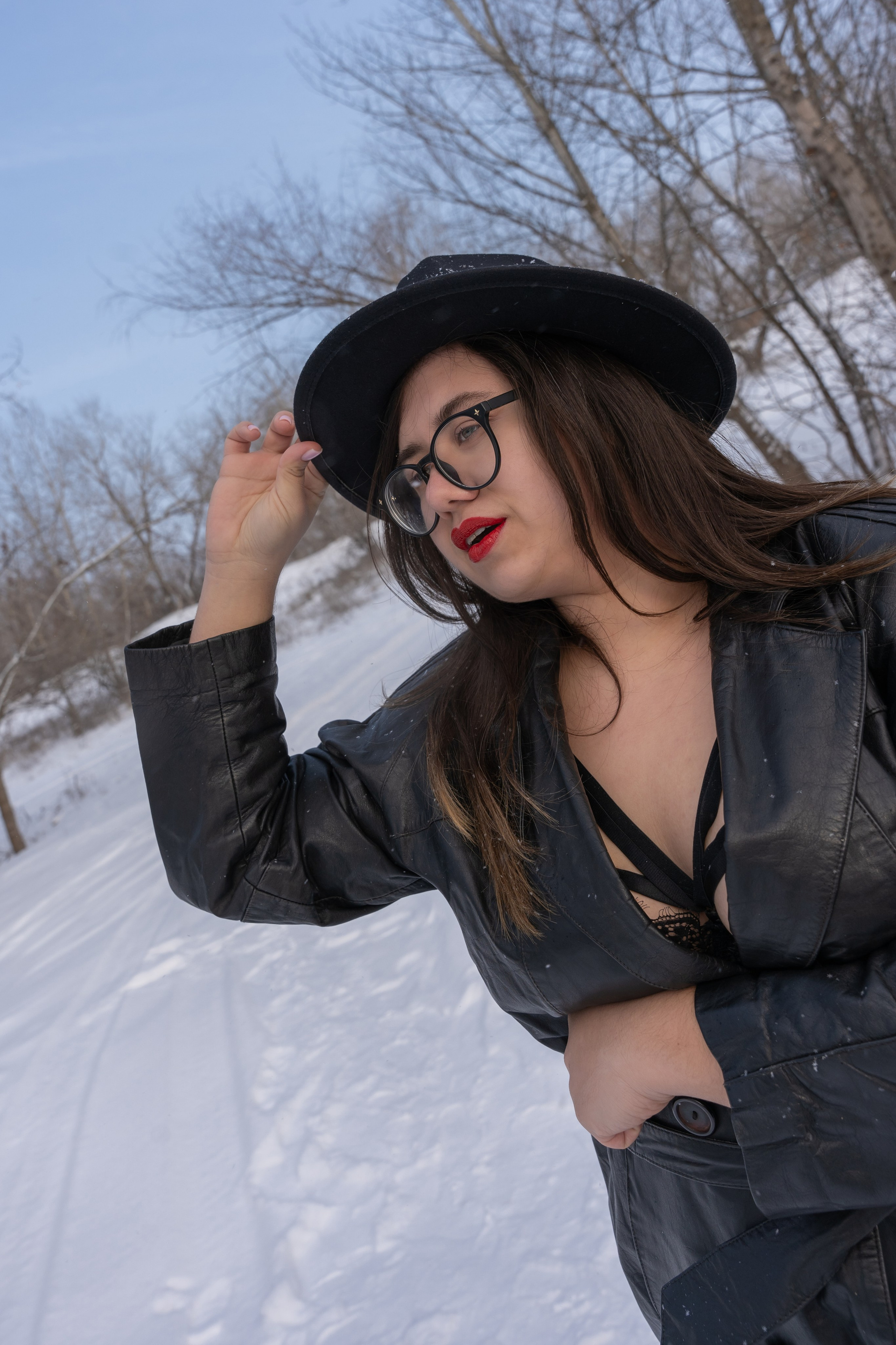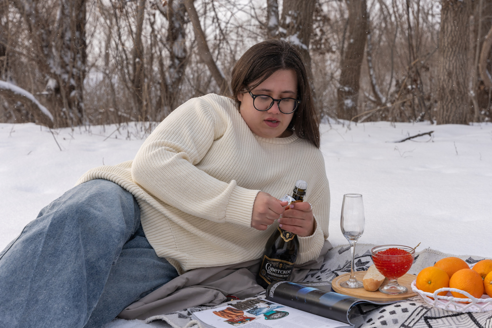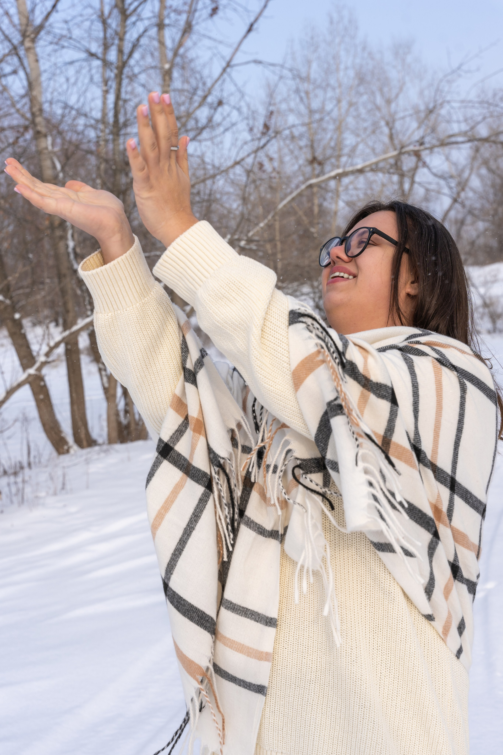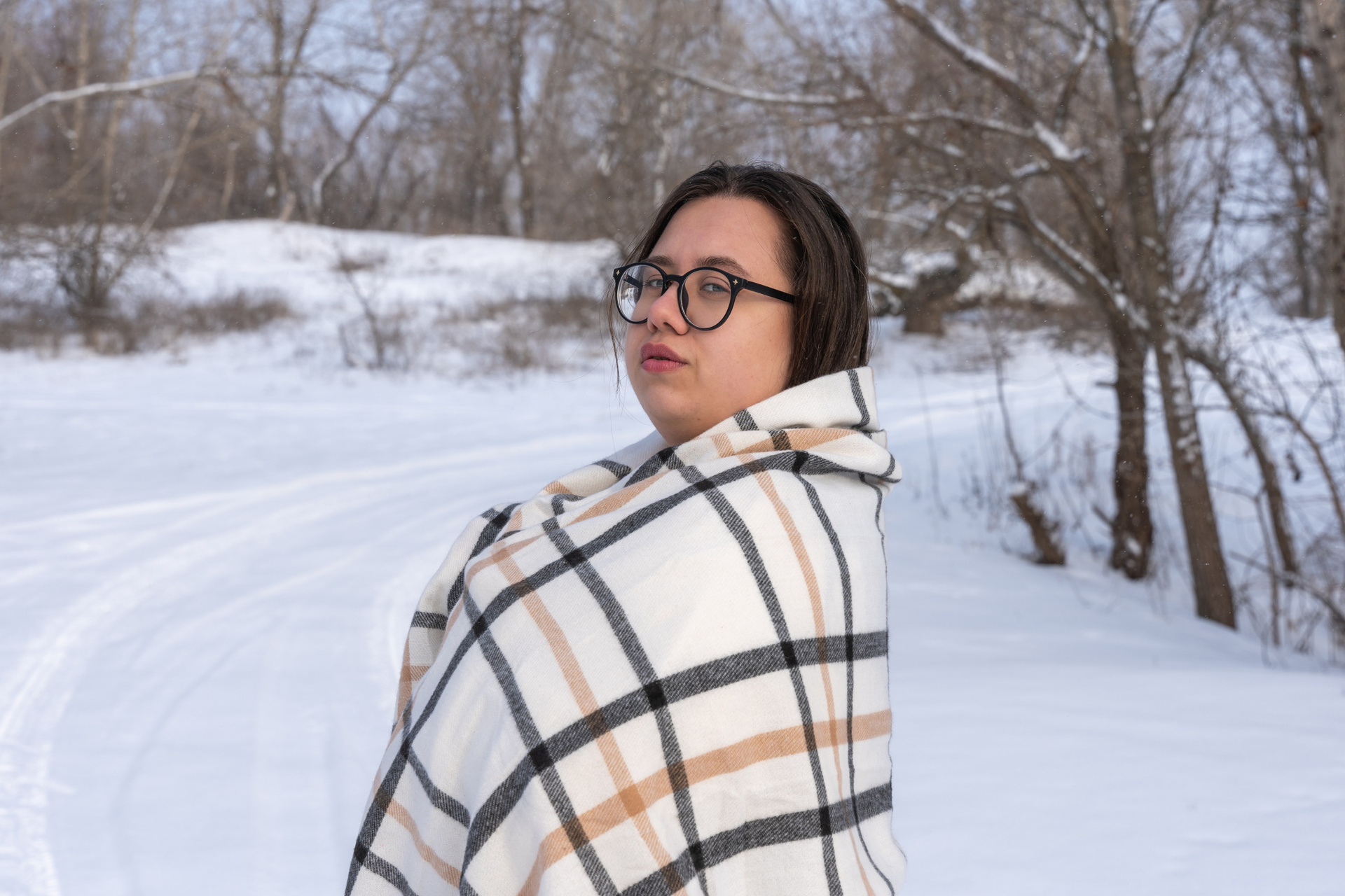 Мы снимали два образа в живописной зимней локации, где снег и деревья создавали волшебную атмосферу. Чтобы не замерзнуть, каждые 10 минут мы грелись в машине, но это не помешало нам получить много красивых и искренних кадров.