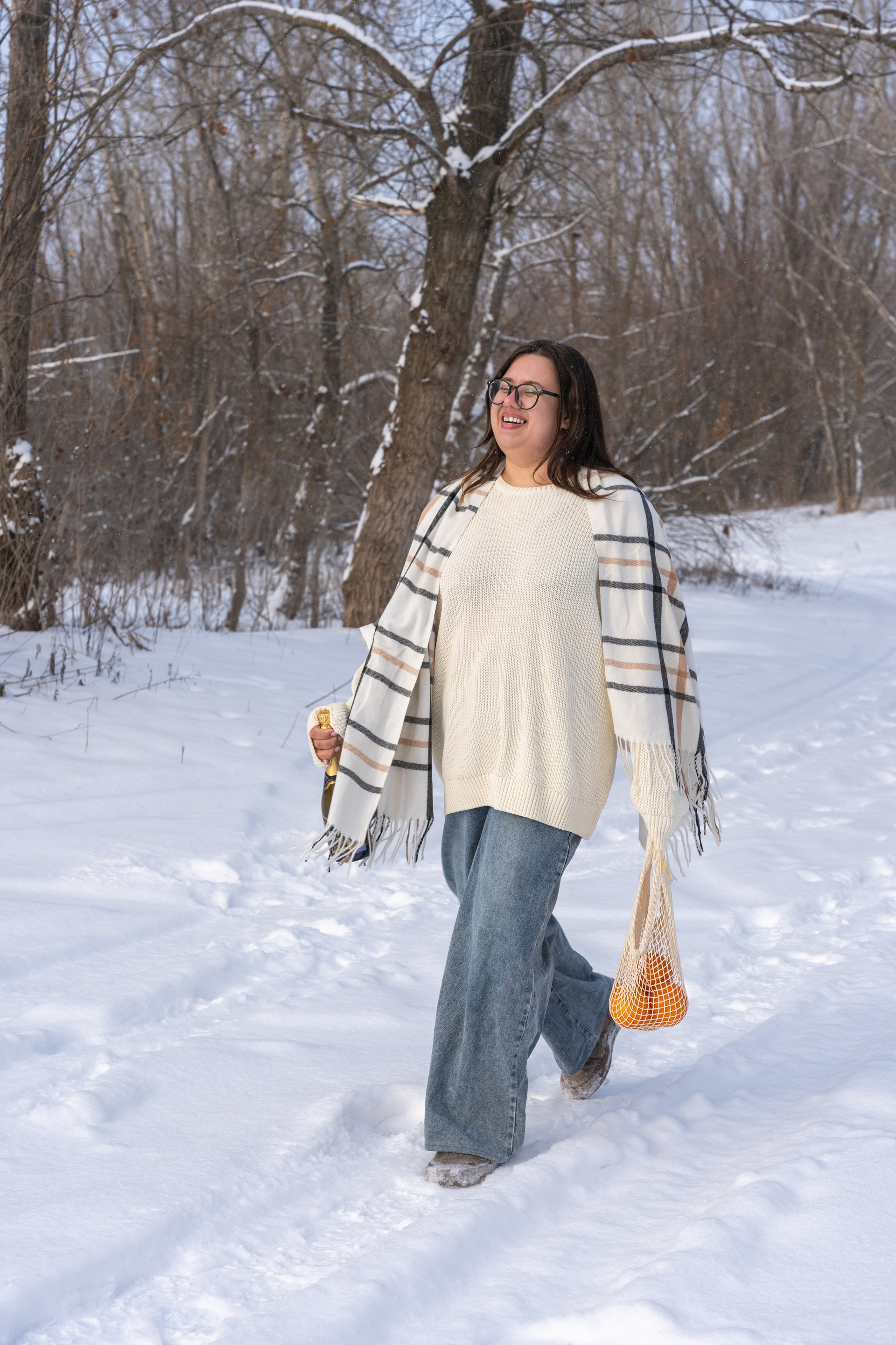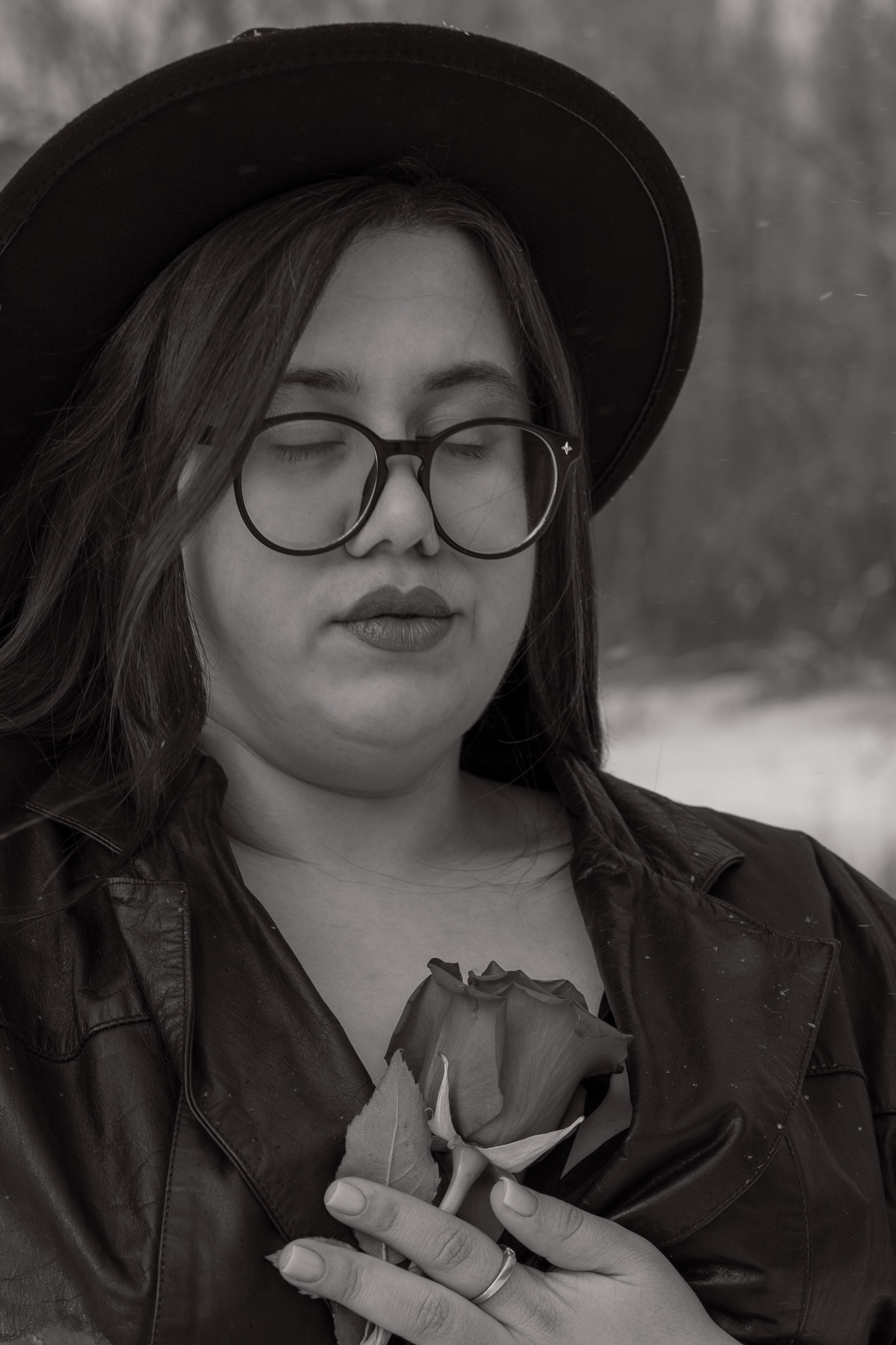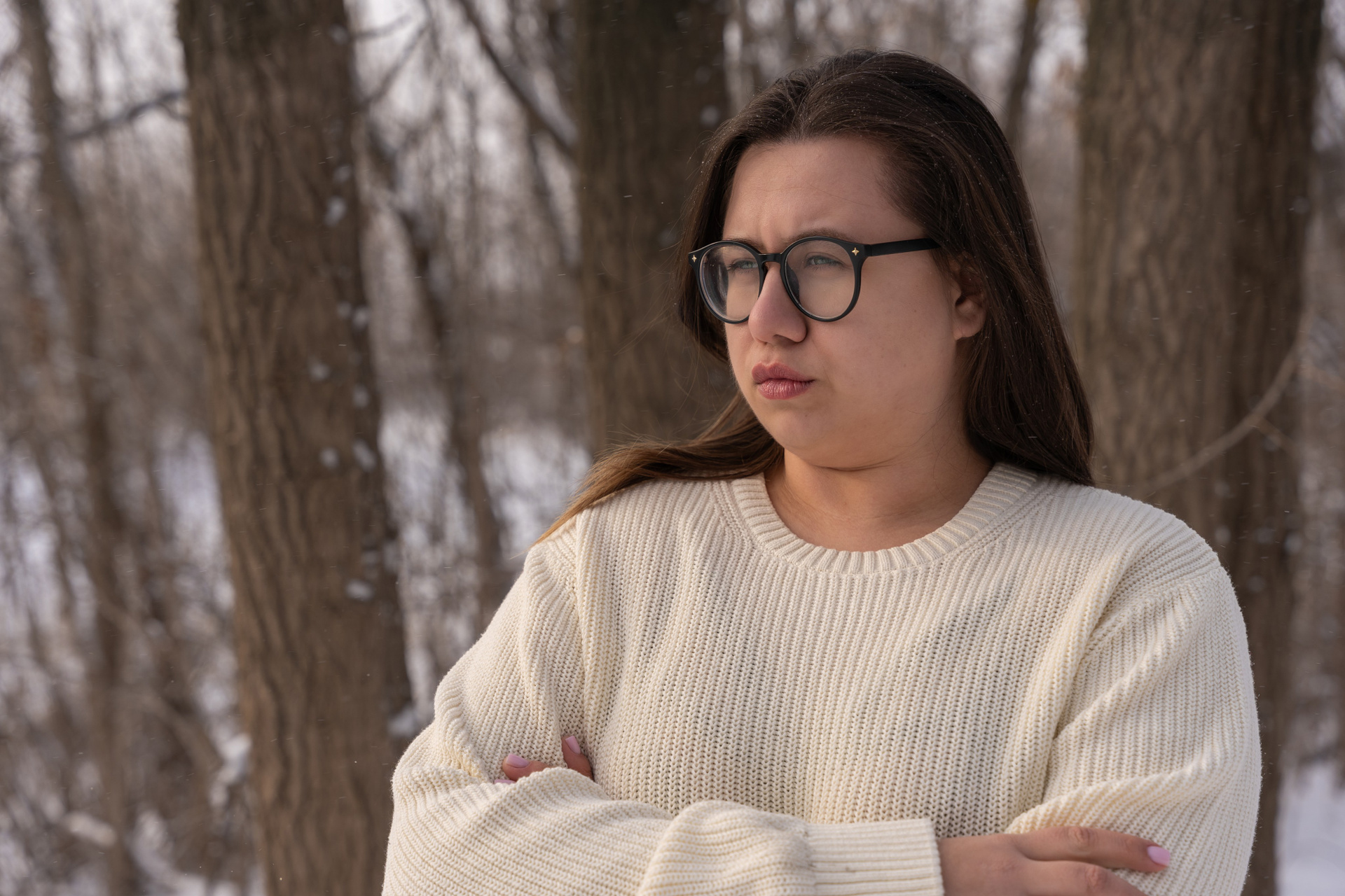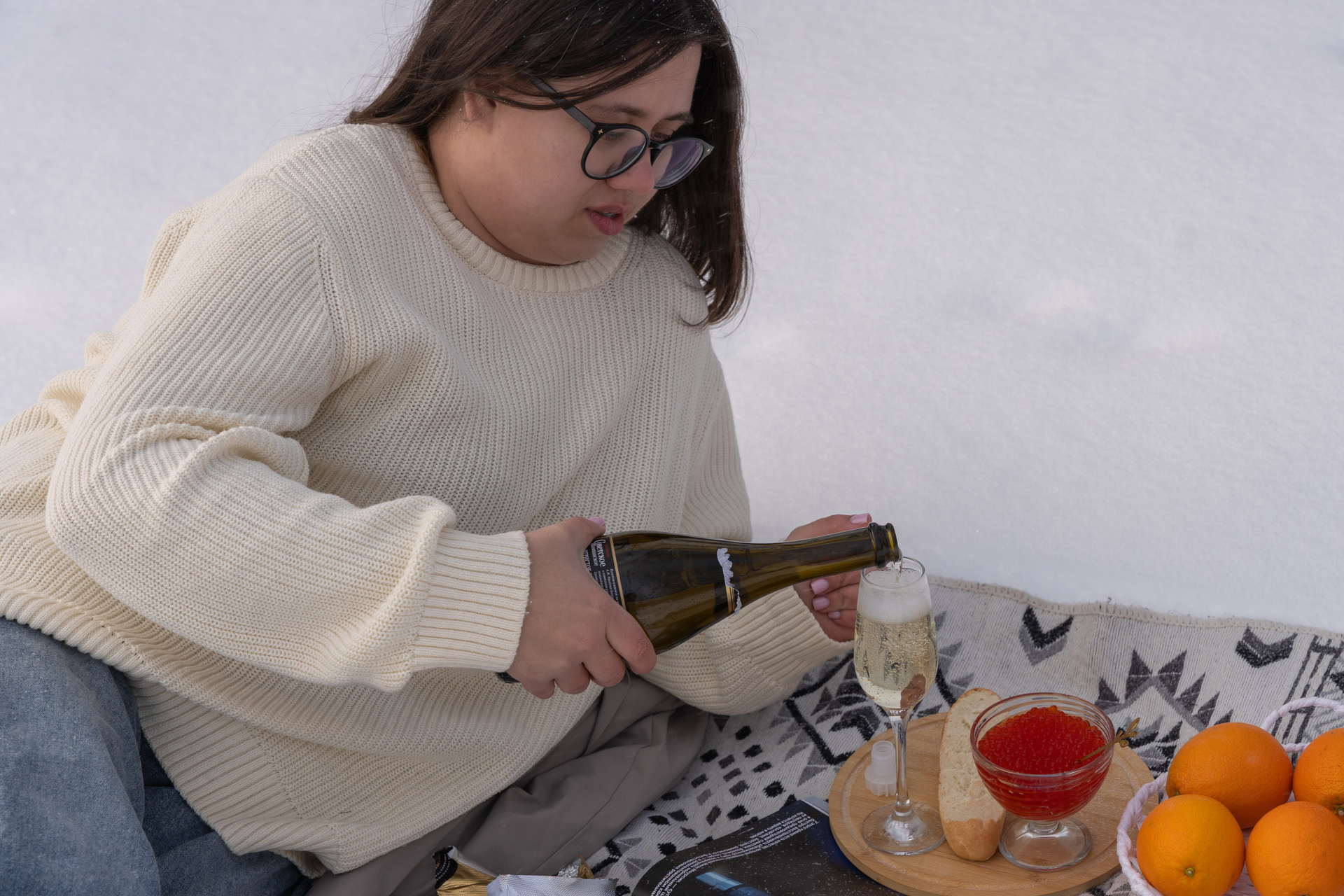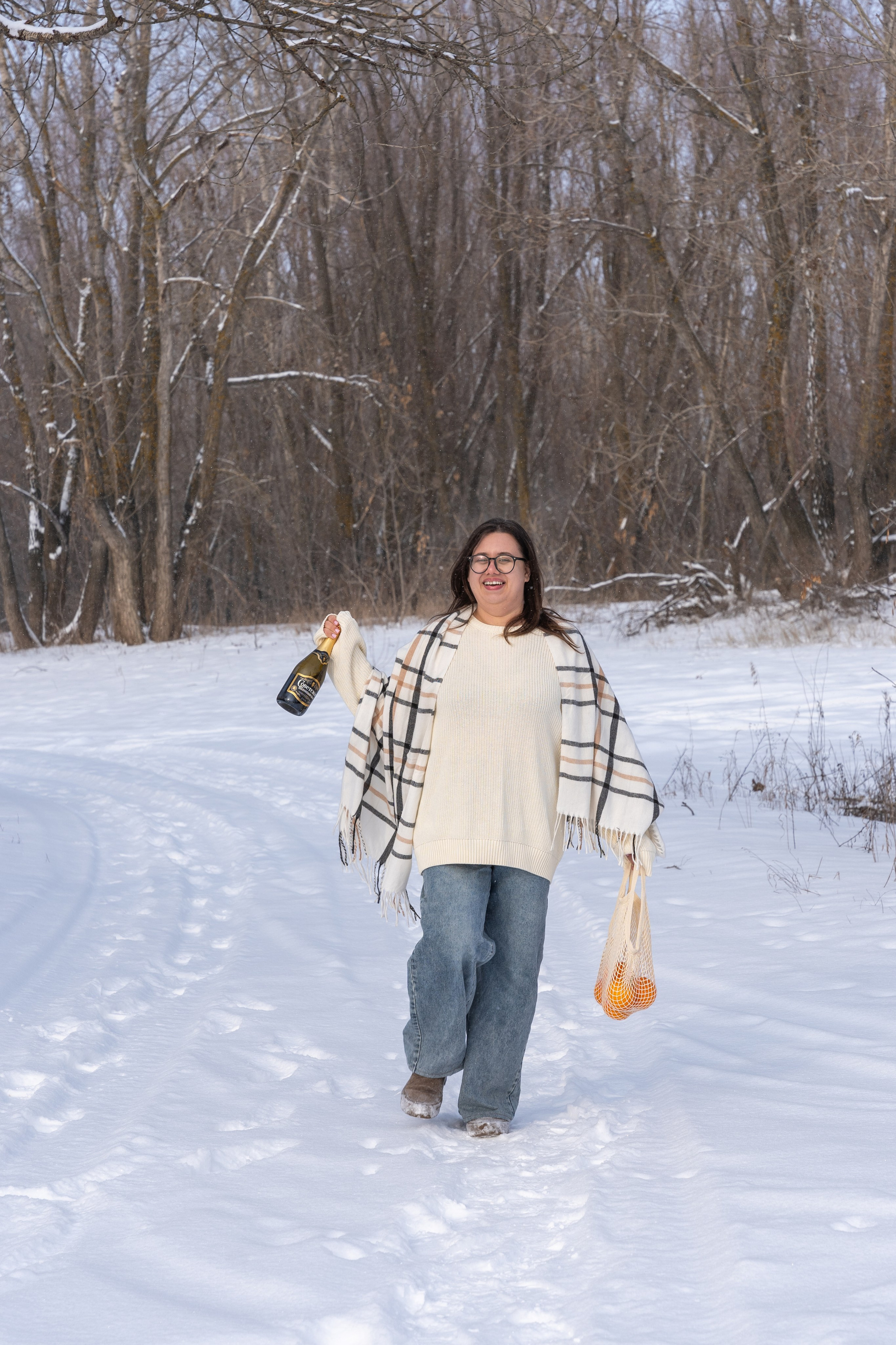 Мы снимали два образа в живописной зимней локации, где снег и деревья создавали волшебную атмосферу. Чтобы не замерзнуть, каждые 10 минут мы грелись в машине, но это не помешало нам получить много красивых и искренних кадров.